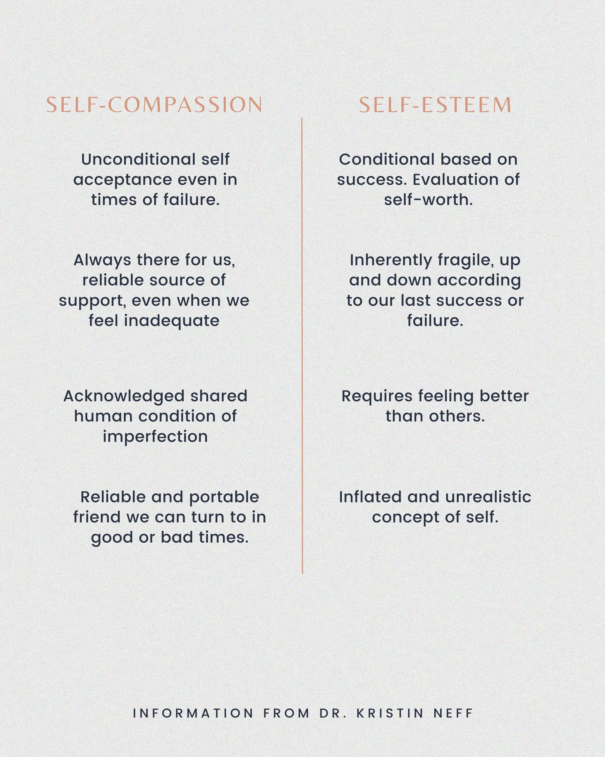 So, let's take a look at these concepts and understand the difference between them, and why Self-Compassion the healthier tool for us.